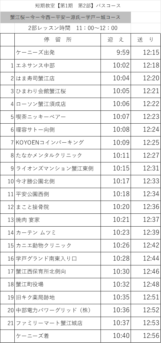 冬の短期教室⛄無料送迎バスルートに新しく蟹江・戸田方面もできました✨