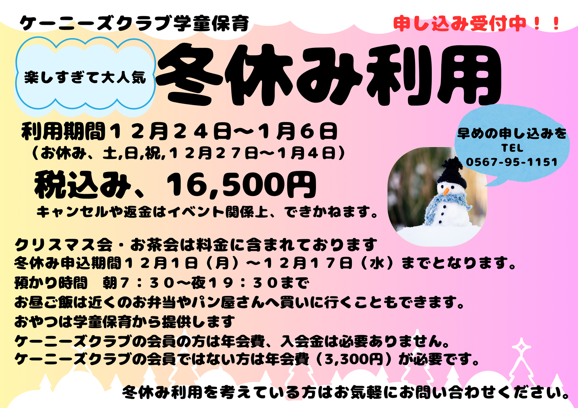ケーニーズクラブの学童保育でいっしょにあそびませんか?⛄🎄