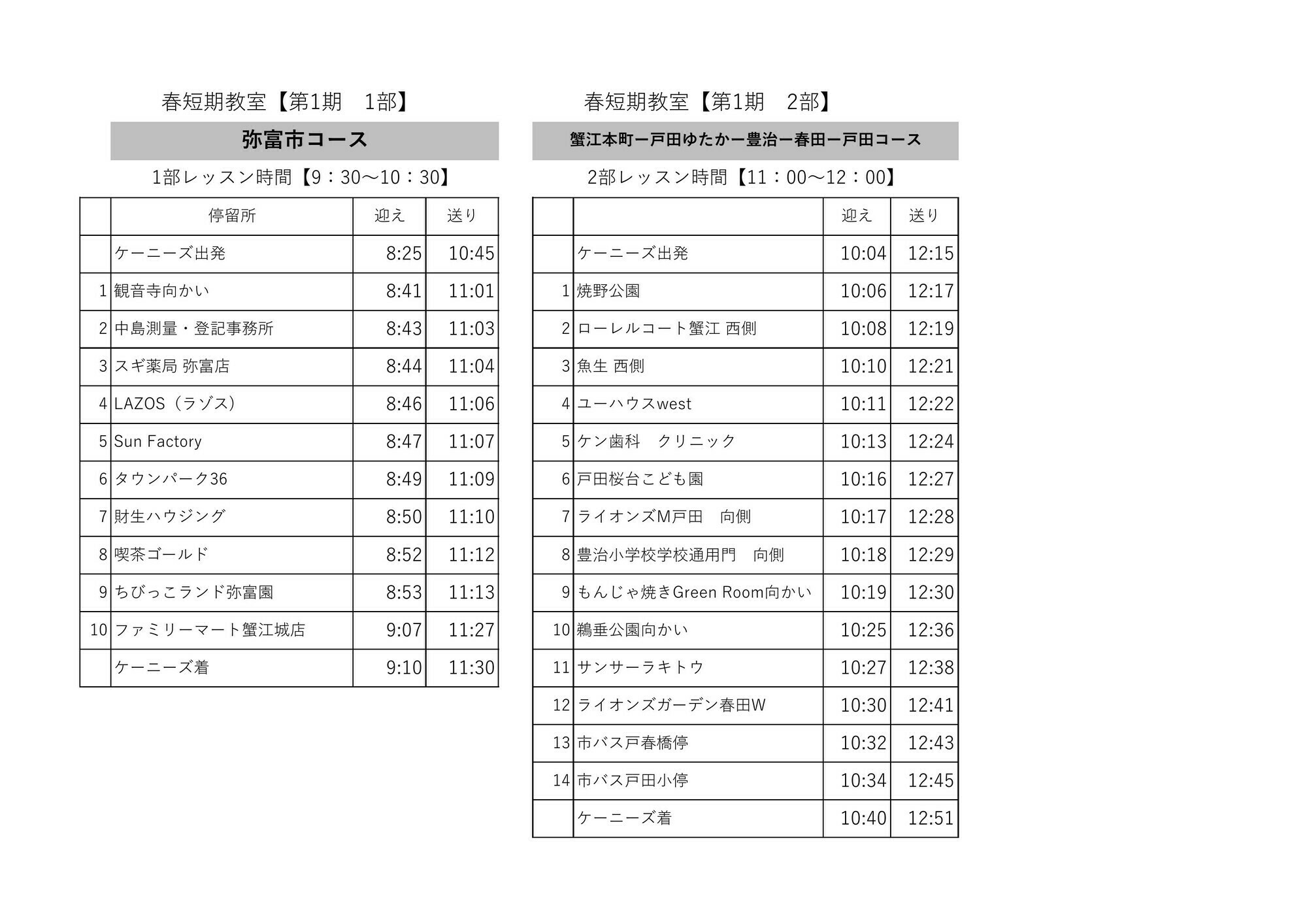 2026年 春休み短期教室~バスコースのご案内~