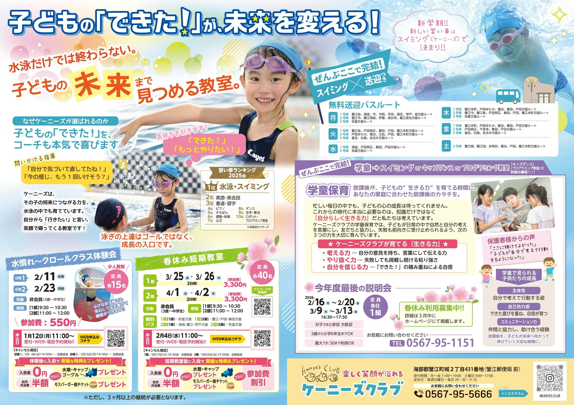 子どもの「できた!」が未来を変えるキャンペーンスタート 入会キャンペーン情報+春休み短期水泳教室募集スタート情報 是非この機会にご入会をお待ちしております。